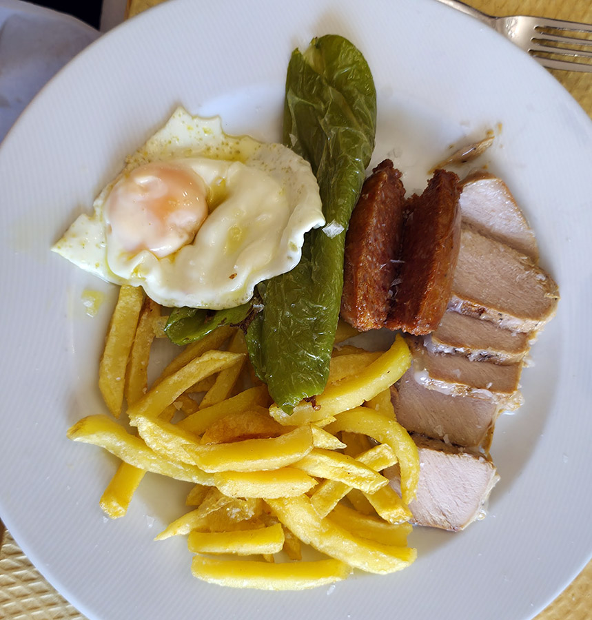 - El plato de Diego (lomo en manteca, huevos, chorizo, patatas y pimientos)