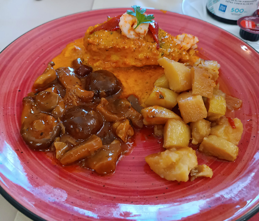 - Merluza rellena (rellena de marisco y con salsa de gambas)